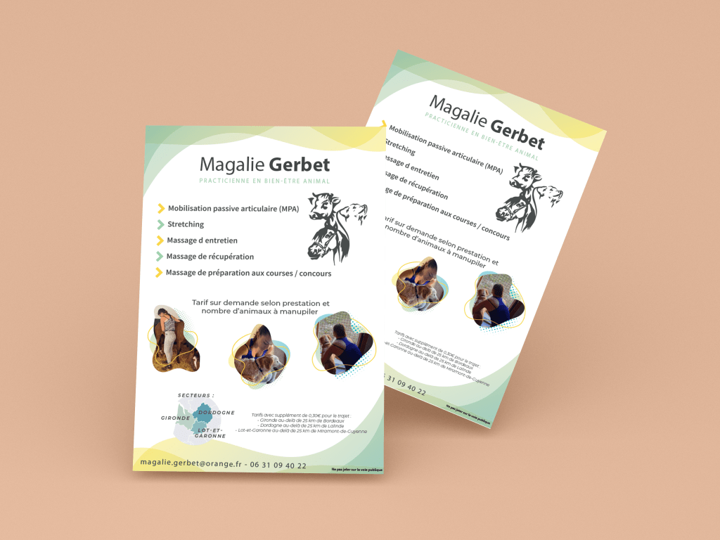 Création de multiples supports d’impression tels que des cartes de visite, flyers, panneaux et plaque magnétique.